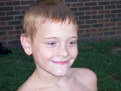 Every year we always have Taylor's party at the Rockwood Community Center. Taylor loves to swim so it works out perfect. We all had a great time. This is the first year that I have ever made her cake, or I guess you could say cupcakes. But Jessica had give me a recipe for homemade butter cream icing had it is very good. So I decided I was going to make them this year and I thought that they turned pretty cute. I had made a cupcake tier for her cake then bought cupcake holders from the bakery for the rest. I made eighty cupcakes that day. Back to the party, it wouldn't have been one if Jeremy Hicks didn't push someone in. Jessica and I was the lucky girls this year that got it. After singing to Taylor, the kids decided to get into a food fight. There was pizza, chips, and cupcakes everywhere and on everyone. I guess you could say it turned to be a pretty exciting party.